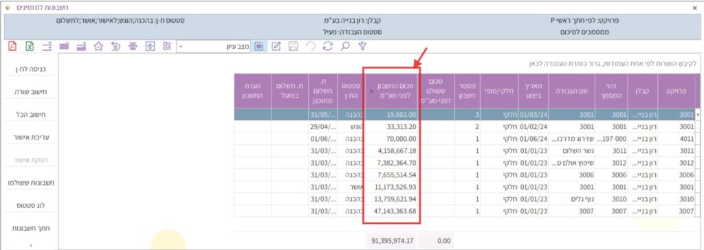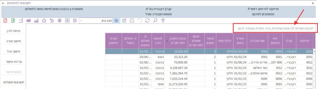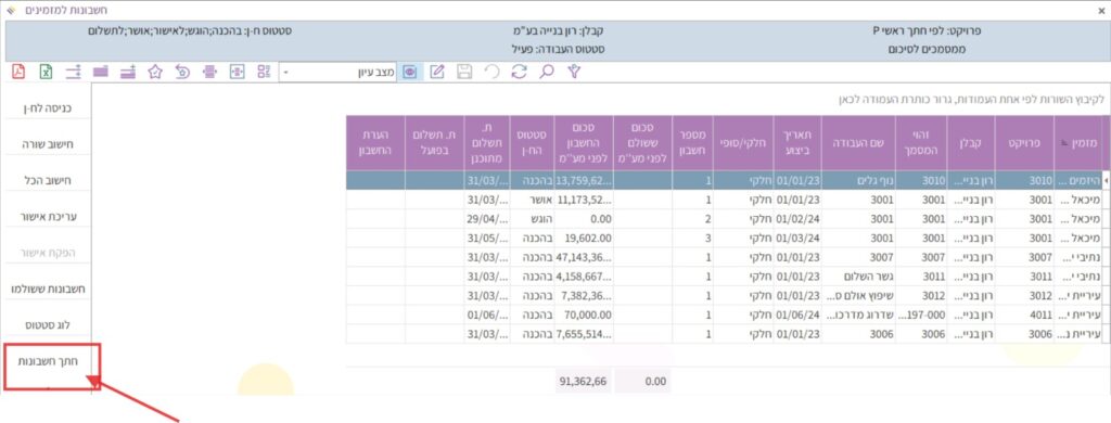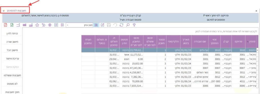 למעקב מרוכז אחר כל החשבונות שהגיש הקבלן למזמינים יש לפעול לפי ההנחיות הבאות: