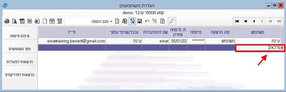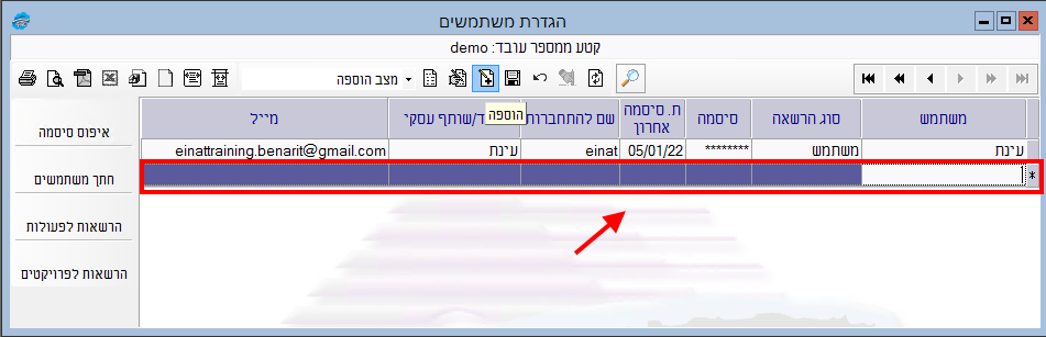9. נוצרת שורה חדשה להזנת פרטי המשתמש החדש: