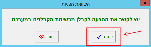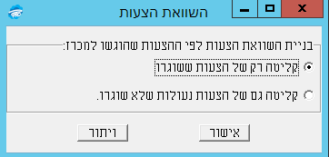 5. נפתחת חלונית ששואלת אם רוצים לקלוט להשוואת ההצעות רק הצעות ששוגרו או גם הצעות נעולות שלא שוגרו.