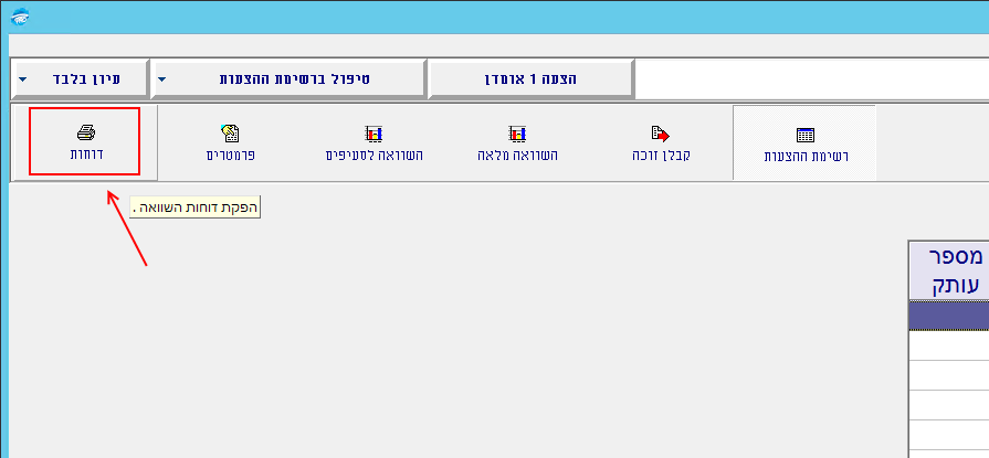 7. כדי להפיק טבלת השוואה, יש ללחוץ על הכפתור “דוחות” בסרגל הכלים: