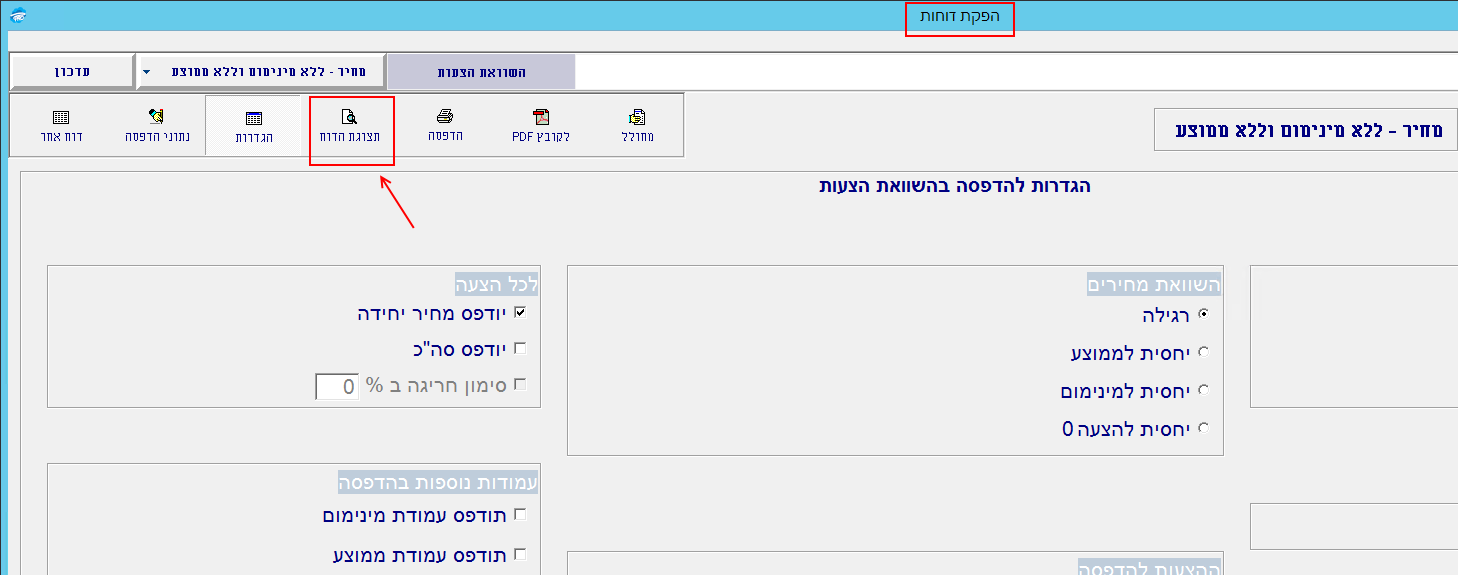 8. נפתח המסך “הפקת דוחות”. ללחוץ על “תצוגת הדוח”: