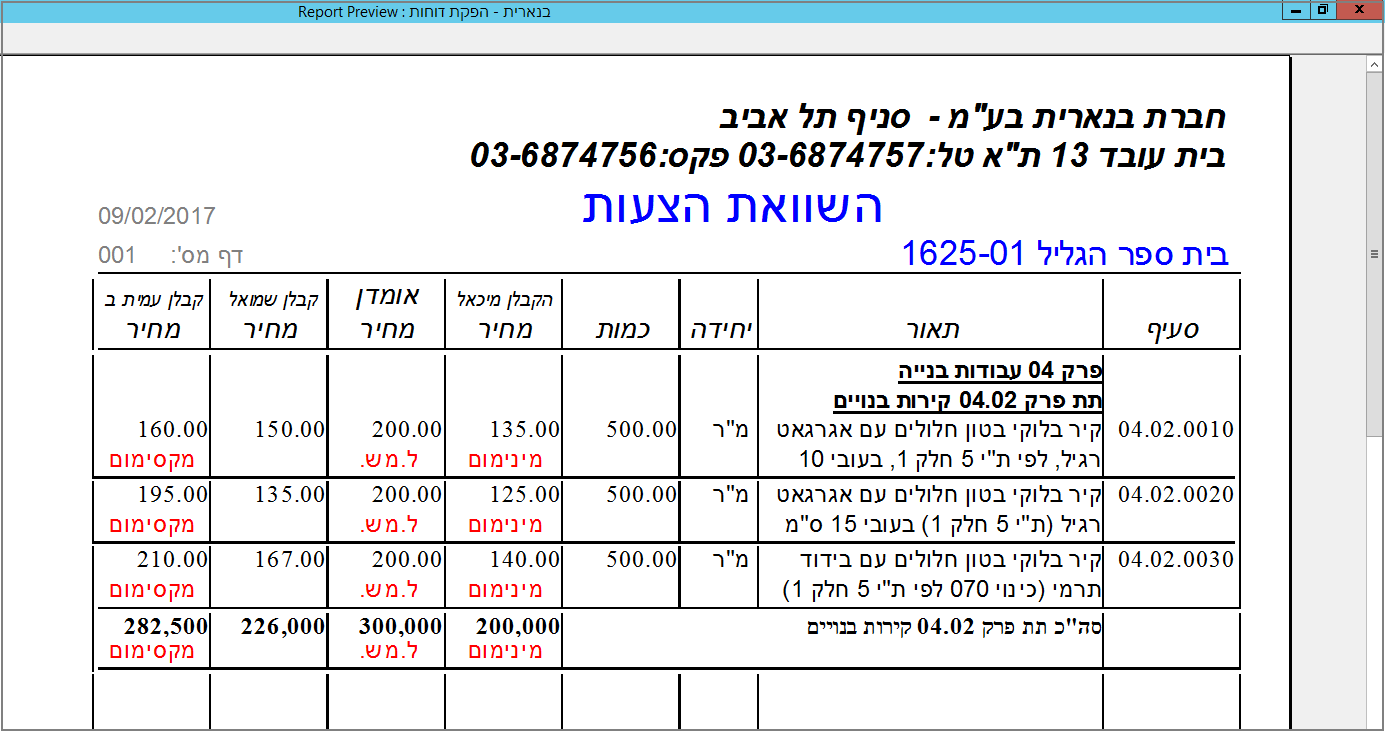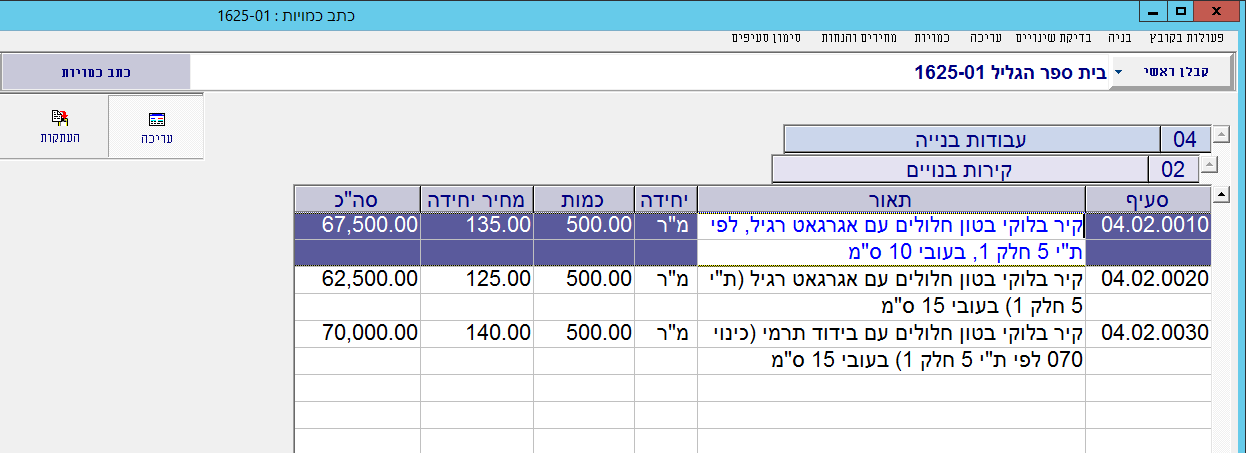 במקביל, מסמך כתב הכמויות עם המחירים של הקבלן הזוכה נבנה במסך “קבצי בנארית לעבודה”.