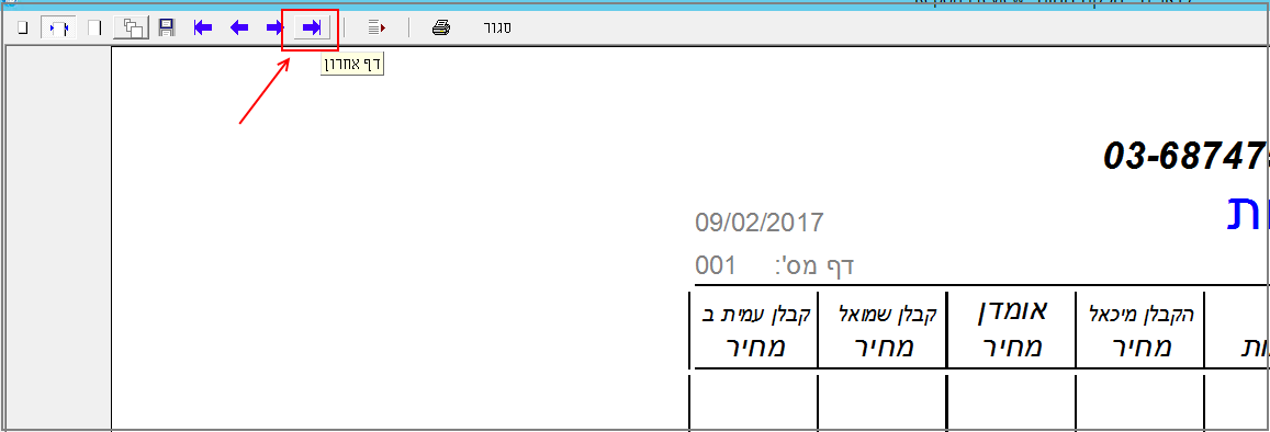10. כדי לעיין בריכוז של הדוח, יש לקפוץ לדף האחרון באמצעות לחיצה על הכפתור “דף אחרון” בסרגל הכלים: