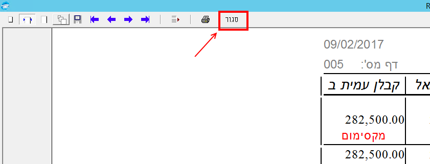 12. נצא מהדוח באמצעות לחיצה על הכפתור “סגור” בסרגל הכלים: