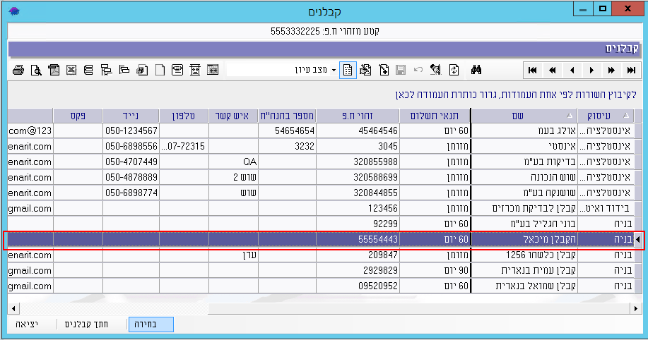 לאחר שהקבלן הוסף לרשימה, לוודא שהשורה שלו מסומנת, וללחוץ על הכפתור “בחירה” למטה.