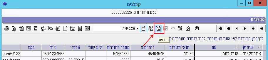 אם הקבלן שהגיש את ההצעה הזוכה לא מופיע ברשימה, יש להוסיף אותו באמצעות כפתור ההוספה (הפלוס) בסרגל הכלים העליון: