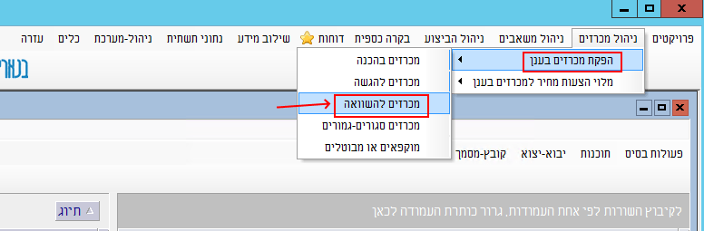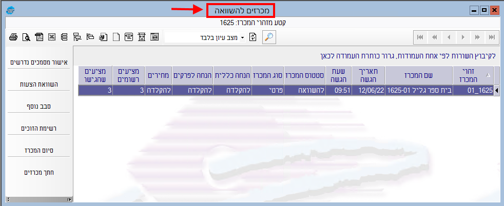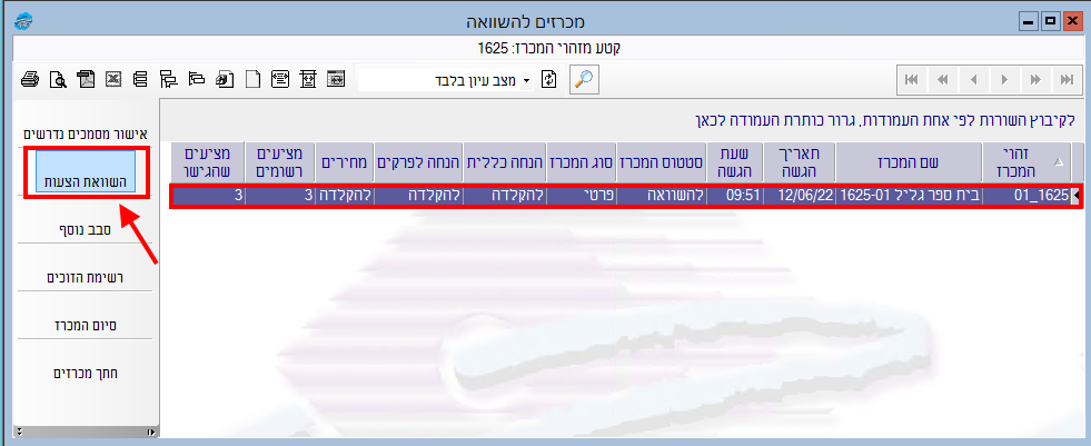13. ומהמסך של הפקת הדוחות נחזור אל רשימת ההצעות באמצעות לחיצה על הכפתור “חזור” (החץ האדום) בצד שמאל למטה: