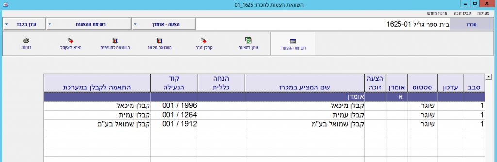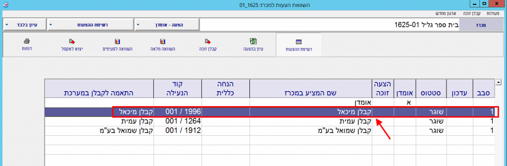 ברשימת ההצעות לסמן את השורה של הקבלן הזוכה: