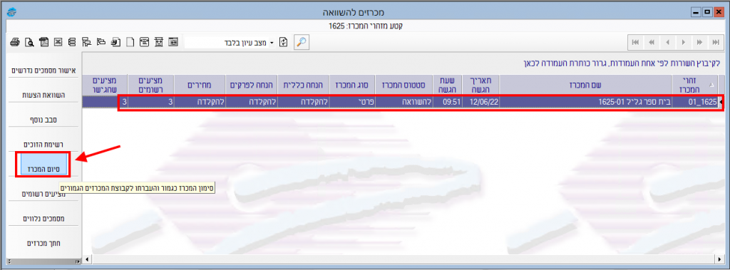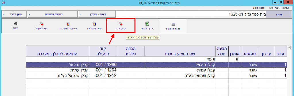 15. ללחוץ בסרגל הכלים על “קבלן זוכה”: