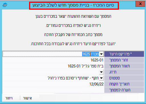 22. נפתחת חלונית “סיום המכרז – בניית מסמך חדש לשלב הביצוע”: