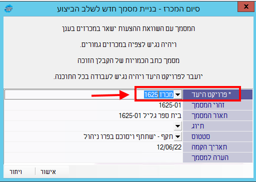 23. בשדה “פרויקט היעד” יש לבחור את הפרויקט שבו ייבנה מסמך כתב הכמויות עם המחירים של הקבלן: