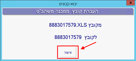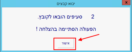 9. נפתחת הודעה על מספר הסעיפים שיובאו לקובץ ועל כך שהפעולה הסתיימה בהצלחה.