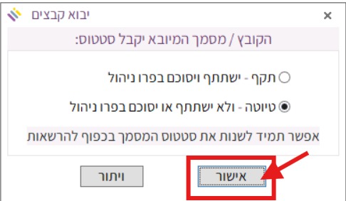6. נפתחת חלונית לבחירת סטטוס המסמך שמייבאים.