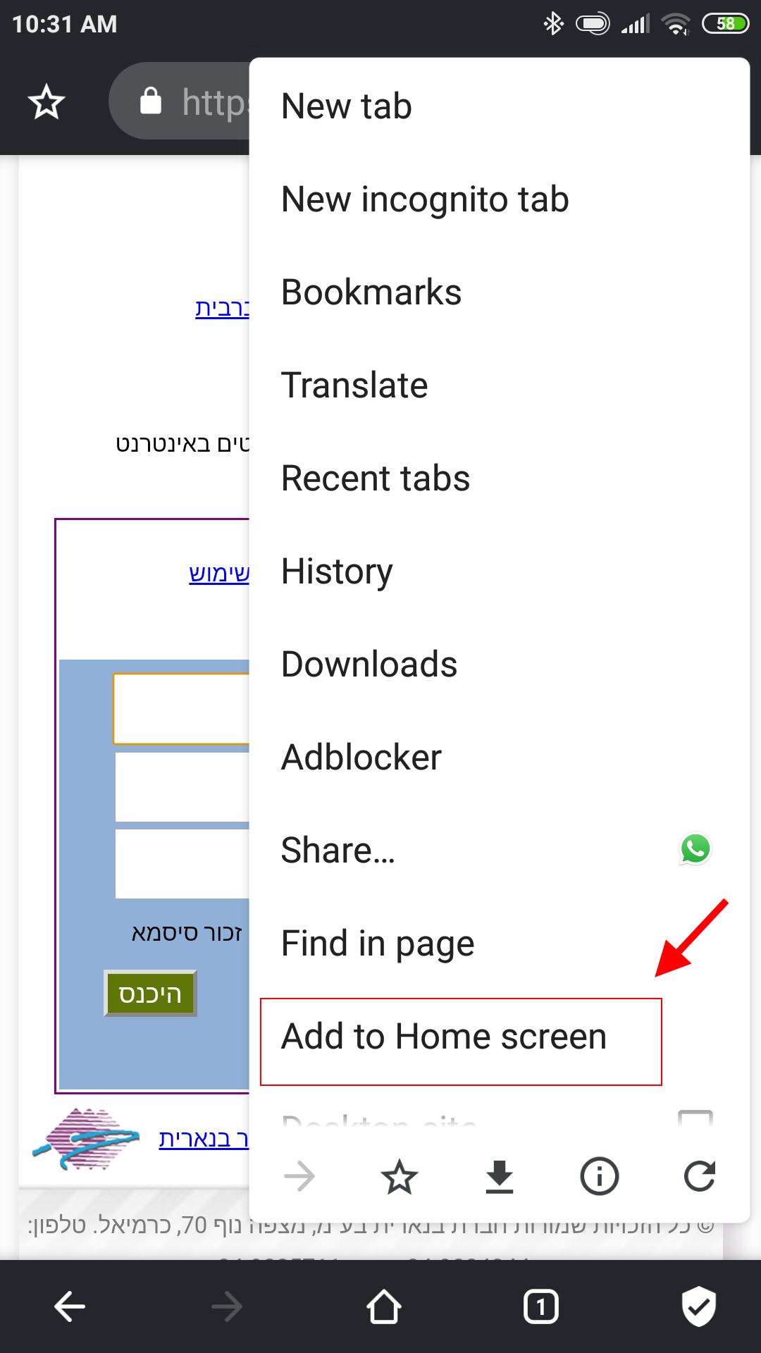 3. לבחור בפקודה: Add to home screen
