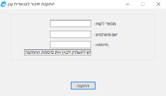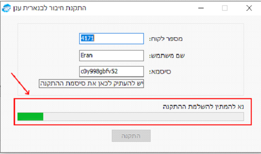 לאחר שהזנתם את מספר הלקוח, שם המשתמש וסיסמת ההתקנה, יש ללחוץ על הכפתור “התקנה” (אפשר להעתיק את הפרטים מהמייל עם copy-paste):