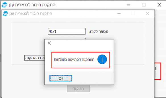 בתום ההתקנה תופיע הודעה שההתקנה הסתיימה בהצלחה: