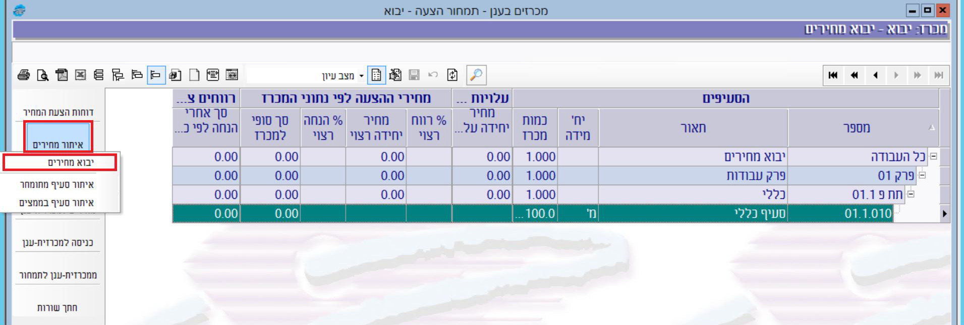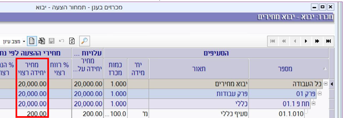בעקבות יבוא המחירים, נכנסים המחירים מתוך הקובץ המתומחר אל מסך תמחור ההצעה, לעמודה “מחיר יחידה רצוי”: