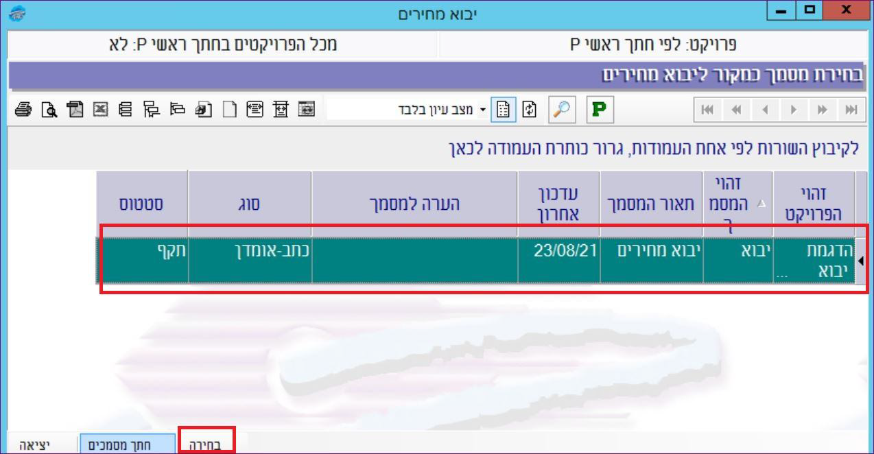 שימו לב: על מנת שפעולת יבוא המחירים תצליח, על הקובץ שאנו בוחרים להיות זהה לחלוטין לזה שבמכרז.