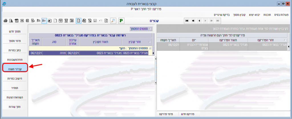 1. במסך “קבצי בנארית לעבודה” לסמן את הקובץ שבו הוגדרה העבודה של קבלן המשנה ולהיכנס אל תוכנת קבלני משנה: