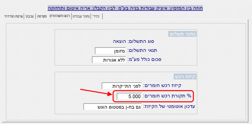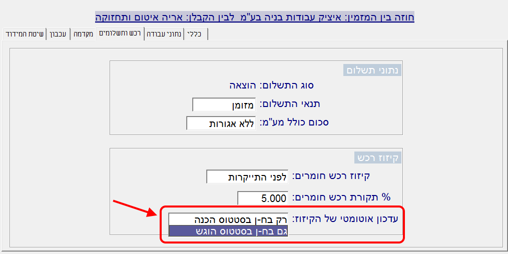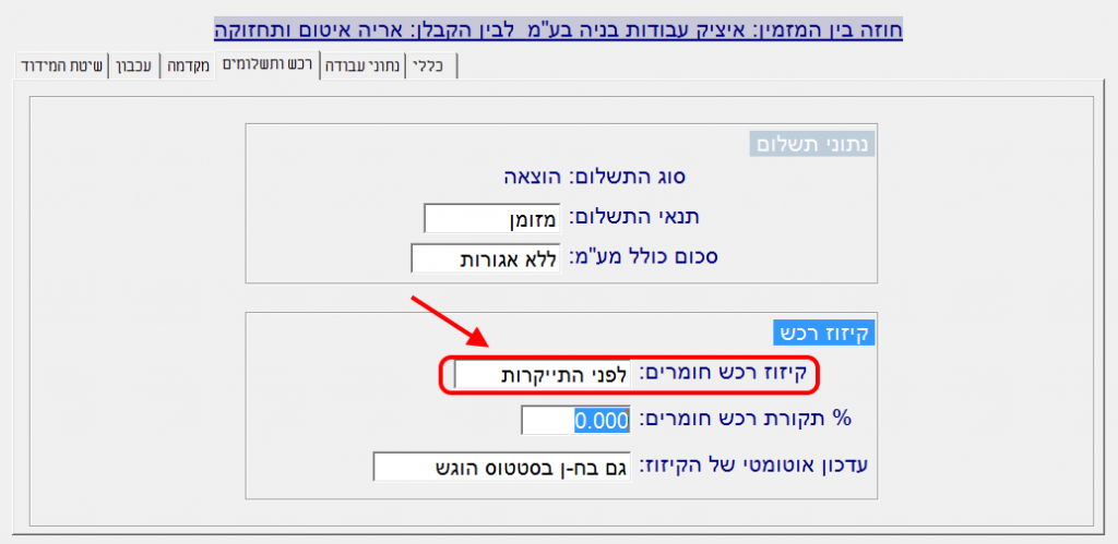 (שימו לב: הבחירה במיקום לפני או אחרי התייקרות משפיעה רק בחוזה שכולל התייקרות. בחוזה שלא כולל התייקרות, לא משנה המיקום שבוחרים):