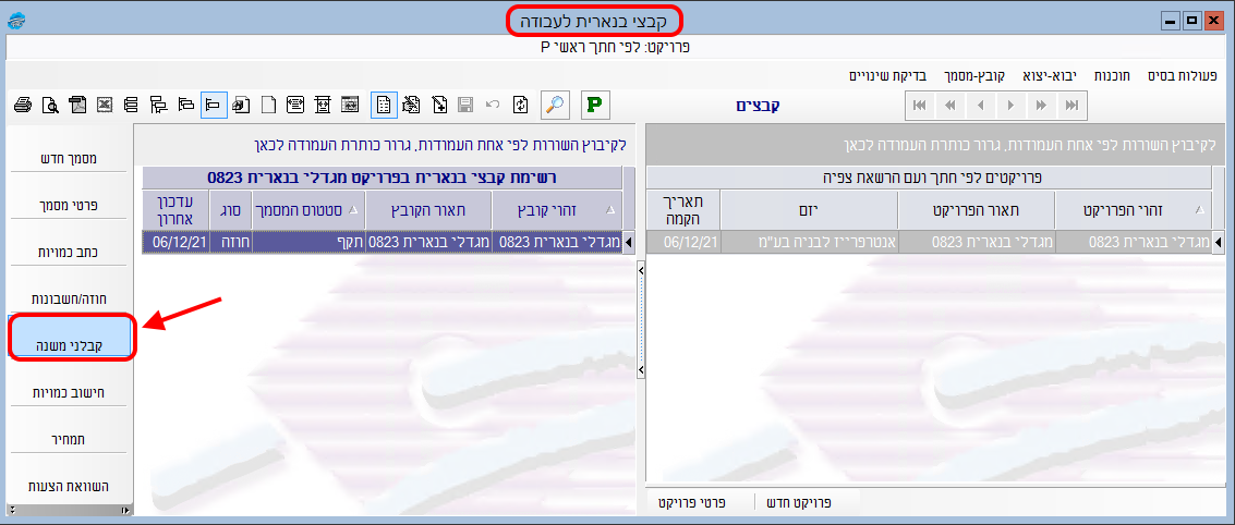 יש לחזור אל מסך “קבצי בנארית לעבודה”, לסמן את הקובץ שבו הוגדר החוזה מול קבלן המשנה ולהיכנס אל תוכנת “קבלני משנה”:
