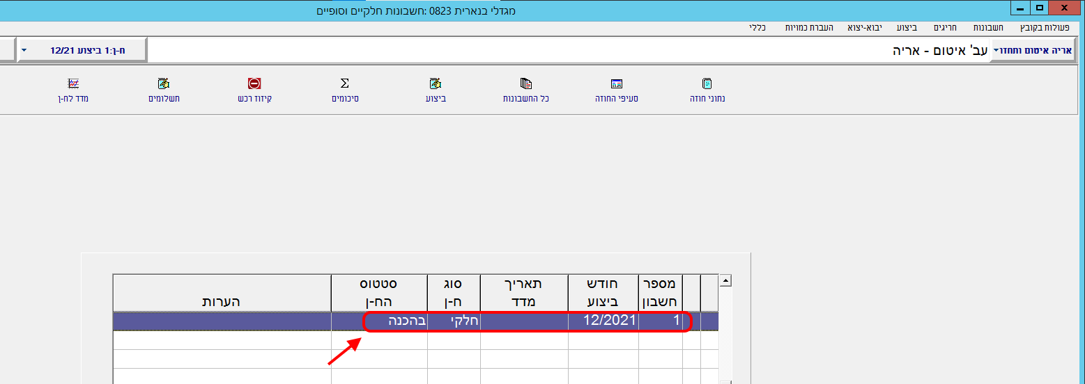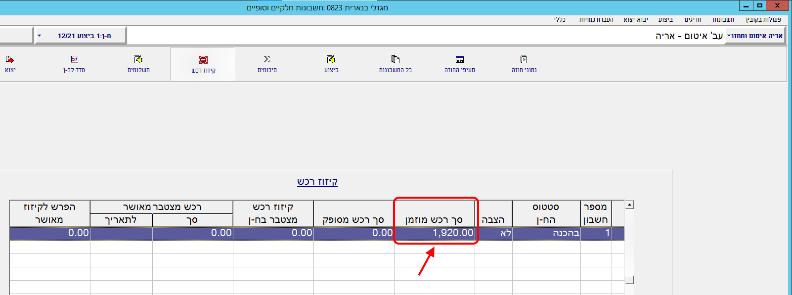 8. ללחוץ למעלה על הכפתור “קיזוז רכש”: