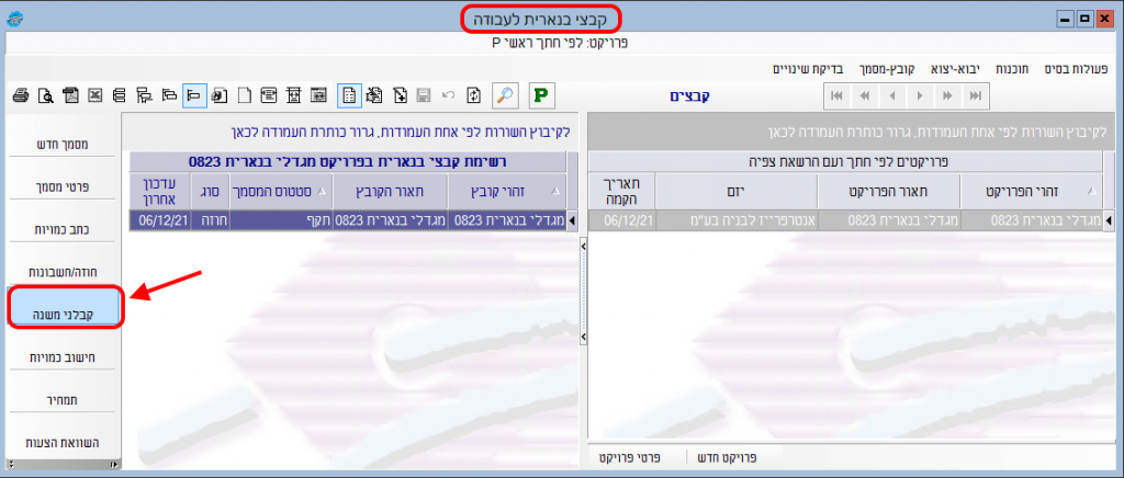 1. במסך “קבצי בנארית לעבודה” לסמן את הקובץ שבו הוגדר החוזה מול קבלן המשנה ולהיכנס לתוכנת “קבלני משנה”: