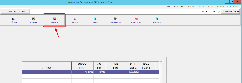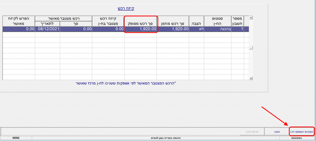 כדי לקזז את סכום האספקה מהחשבון יש ללחוץ על הכפתור “הצבת סך האספקה לח-ן” בצד ימין למטה: