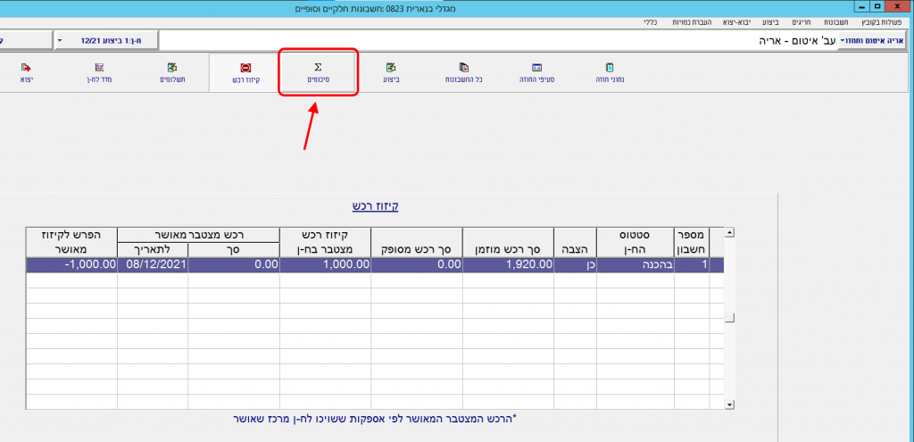 7. כדי לראות את השפעת פעולת ההצבה על החשבון, יש ללחוץ למעלה על הכפתור “סיכומים”: