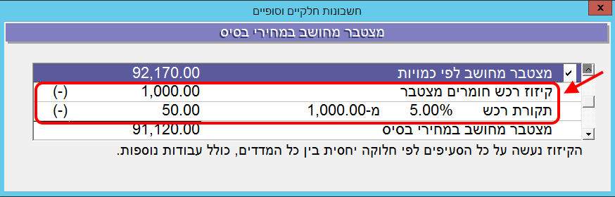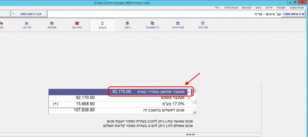 בחלונית “סיכומים” ללחוץ לחיצה כפולה על השורה “מצטבר מחושב במחירי בסיס” כדי להציג את פירוט השורה: