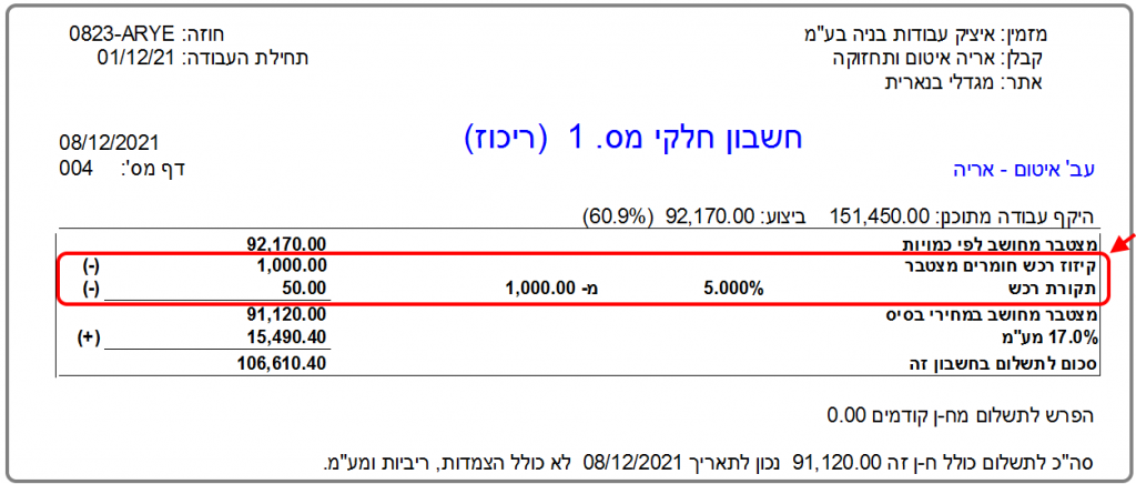 (לשם השוואה ראו: קיזוז סכום האספקה מחשבון הקבלן באמצעות הצבת סך האספקה)