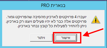 6. מופיעה הודעה על כך שיועברו X פרויקטים לארכיון. ללחוץ על “אישור”: