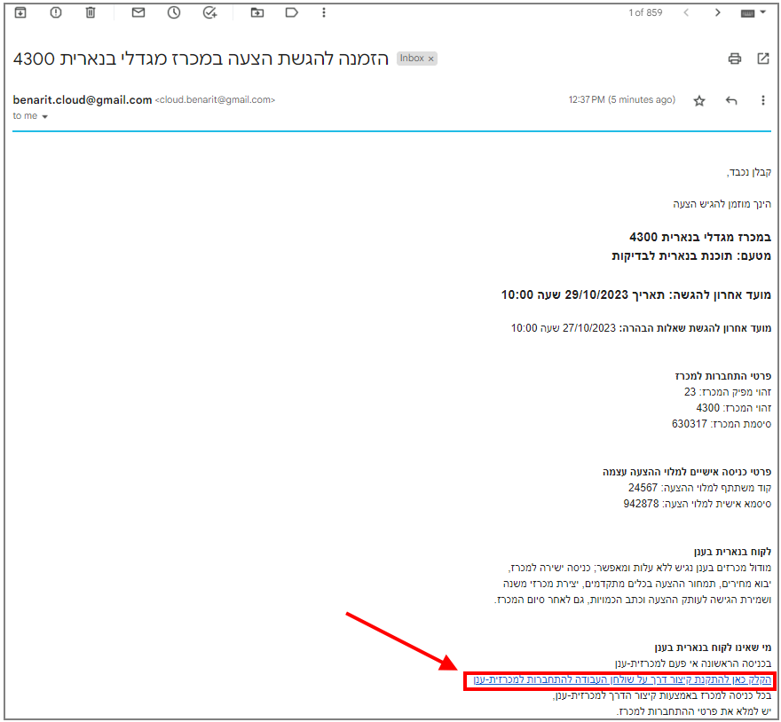 בהודעת המייל שקיבלתם שכותרתה “הזמנה להגשת הצעה במכרז” יש לגלול למטה עד לכותרת “מי שאינו לקוח בנארית בענן” וללחוץ על הקישור “הקלק כאן להתקנת קיצור דרך על שולחן העבודה להתחברות למכרזית-ענן”: