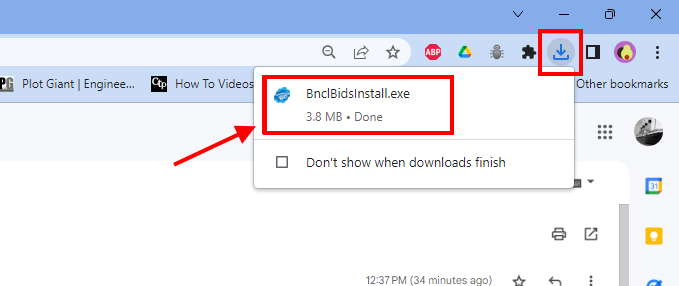 בעקבות לחיצה על הקישור הנ”ל, ייפתח דפדפן האינטרנט ותתבצע הורדת הקובץ BnclBidsInstall.exe: