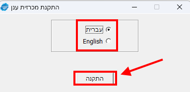 מופיעה חלונית שבה יש לבחור את שפת ההתקנה (עברית/אנגלית), ואז ללחוץ על הכפתור “התקנה”: