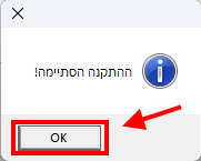 ובתום ההתקנה מופיעה הודעה על כך שההתקנה הושלמה בהצלחה. ללחוץ על הכפתור OK: