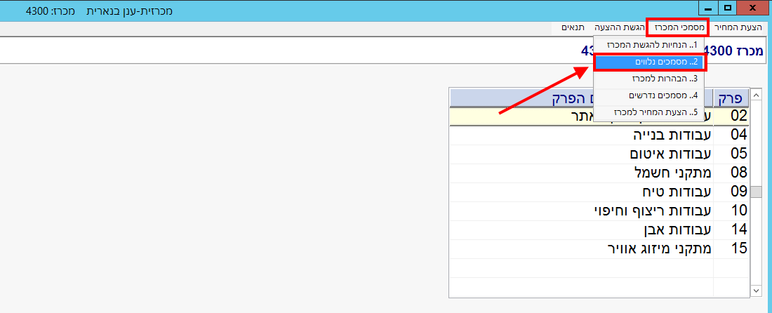 בתוכנת “מכרזית-ענן” להיכנס בצד ימין למעלה לתפריט “מסמכי המכרז” ולבחור בפקודה “מסמכים נלווים”: