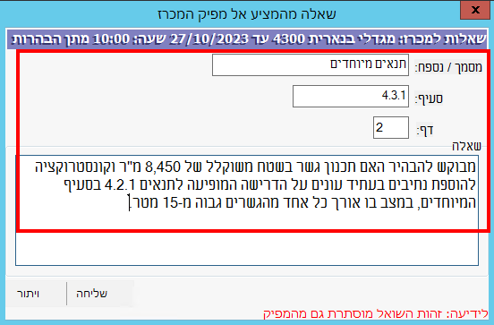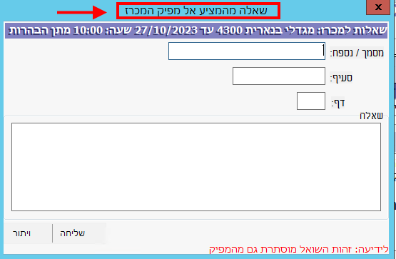 נפתחת חלונית “שאלה מהמציע אל מפיק המכרז”: