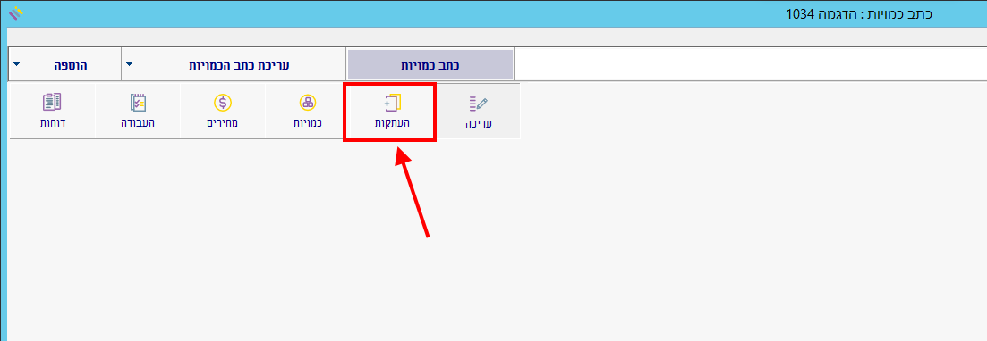 במסך של כתב הכמויות, ללצד בצד שמאל למעלה על הכפתור “העתקות”: