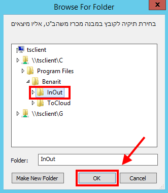 כברירת מחדל הקובץ יישמר בתיקיה InOut.
