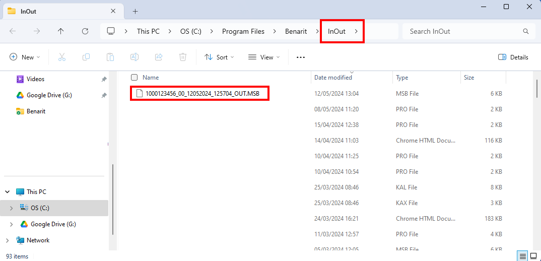 7. את הקובץ בפורמט msb שנשמר בתיקיית InOut יש לשלוח אל משרד הביטחון: