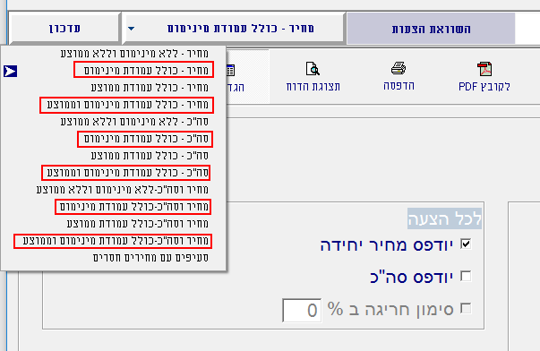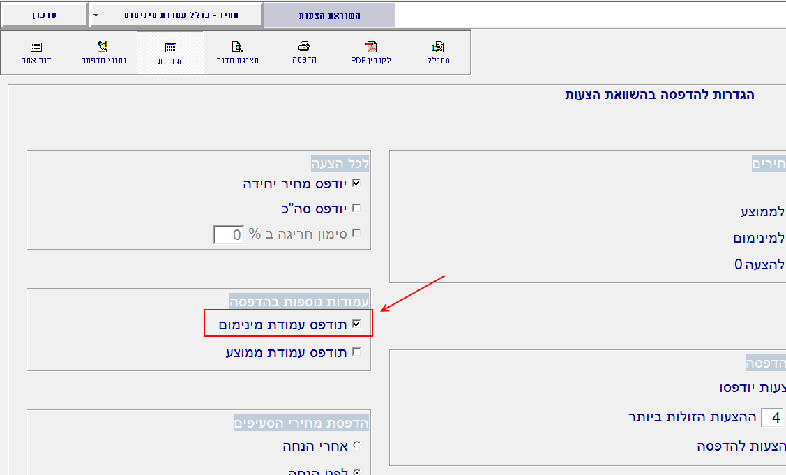 כמו כן, ניתן לסמן במסך הדוחות את האפשרות להדפיס בדוח את עמודת המינימום: