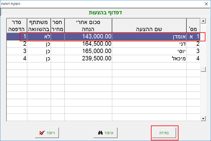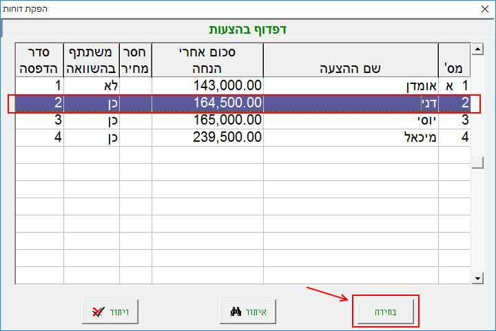 וכעת, כאשר אציג את דוח השוואת ההצעות נראה כך: