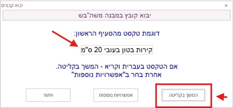 אם דוגמת הטקסט מהסעיף הראשון תקינה, יש ללחוץ על “המשך בקליטה”: