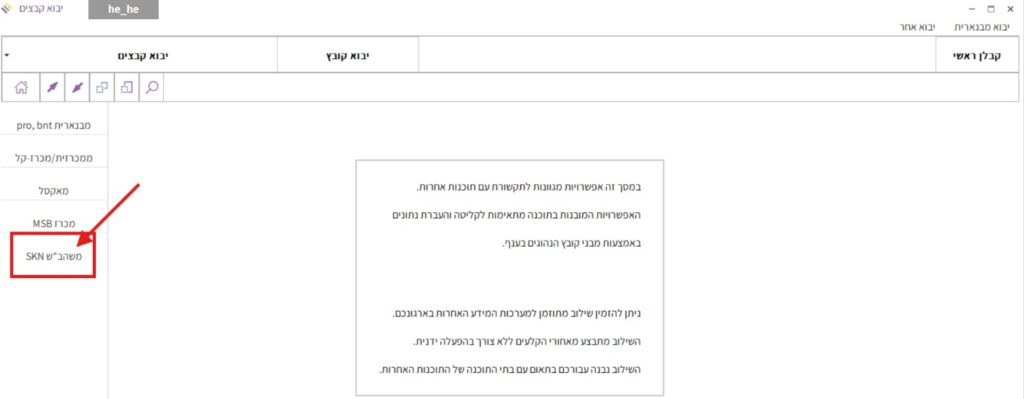 כדי לייבא קובץ משהב”ש עם סיומת SKN יש לפעול לפי ההנחיות הבאות: