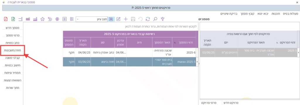 2. ללחוץ בצד שמאל על הכפתור “חוזה/חשבונות”: