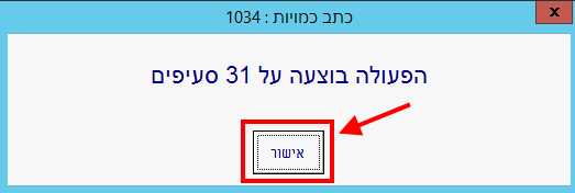 5. מופיעה הודעה לגבי מספר הסעיפים שהפעולה בוצעה עליהם. ללחוץ על “אישור”: