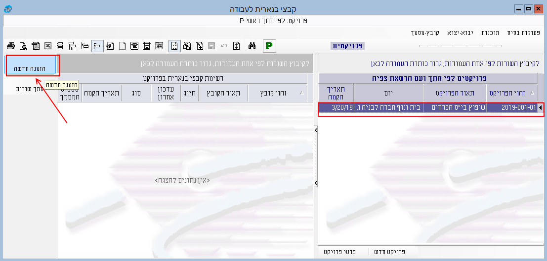 בשלב הקודם יצרנו פרויקט חדש מסוג “הזמנות עבודה להסכם מסגרת ארגוני”, וכעת נגדיר בתוכו הזמנת עבודה חדשה.