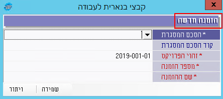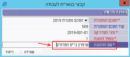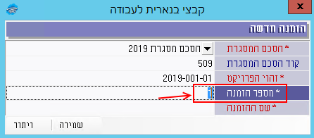 2.4 בשדה “מספר הזמנה” מופיע באופן אוטומטי מספר סידורי של הזמנת העבודה. ניתן להקליד מספר אחר בהתאם לצורך. השדה הזה הוא שדה חובה, אין להשאירו ריק: