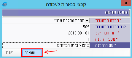 2.6 לאחר שמולאו כל השדות בחלונית “הזמנה חדשה” ללחוץ על “שמירה”: